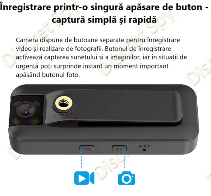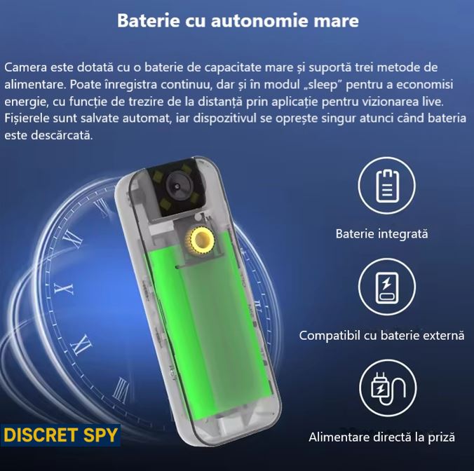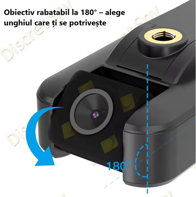 - 🔄 Obiectiv flip 180° – poziționezi rapid pentru orice unghi (exterior / tip „selfie”).