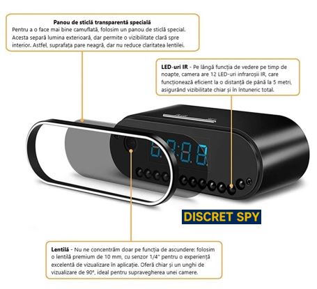 - Cameră spion tip ceas de birou