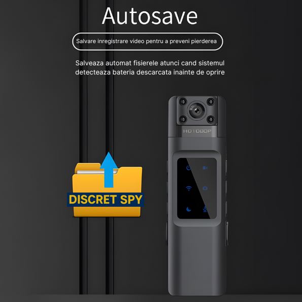 - Autonomie extinsă – baterie ~1000 mAh pentru până la 7 ore de filmare continuă. ⏱️🔋