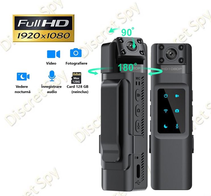 Cameră corporală compactă și robustă, perfectă pentru documentarea activităților zilnice, întâlniri, ture de pază sau sport.